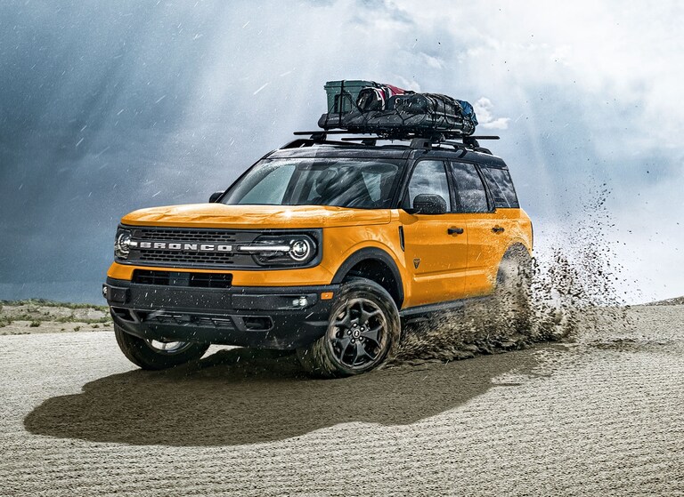 Ford Bronco Sport and Ford Bronco: Compact but powerful, the Ford Bronco Sport offers serious off-road chops in a compact package. The full-size Ford Bronco gets even more serious, adding a lot of interior cargo space and off-road ready additions like all-terrain tires, a lifted suspension, and powerful turbocharged V6 engines.
